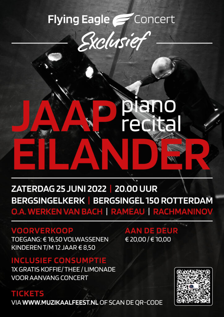 Zojuist hebben wij onze nieuwe poster ontvangen voor het concert van 25 juni 2022. Wij noemen dit een Flying Eagle Concert Exclusief. Waarom? Omdat normaal gesproken meerdere musici bij ons meespelen bij Flying Eagle Concerten. Jaap Eilander zie uit naar uw komst en heeft weer veel zin om op de prachtige Steinway concertvleugel te spelen.